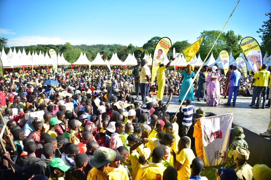 Buikwe District, Uganda – Earlier today, the National Resistance Movement (NRM) Presidential Candidate, Yoweri Kaguta Museveni, accompanied by First Lady Maama Janet Museveni, arrived at New Colony Playground in Buikwe district to address his last campaign rally in the Greater Mukono sub-region.